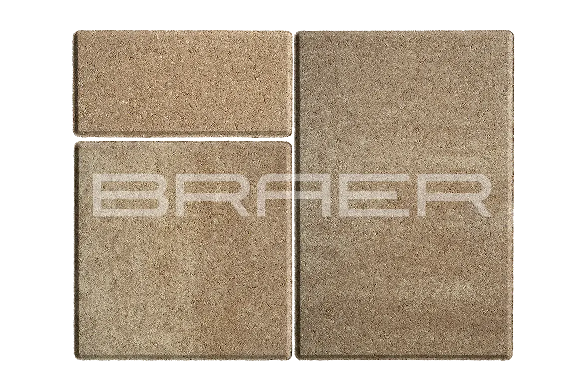 Вибропресованная тротуарная плитка BRAER изготавливается из пескоцементной смеси обеспечивающей высокую прочность (М200-400) и морозостойкость (F200-300) на автоматизированном высокотехнологичном импортном оборудовании, гарантирующем высокую точность и качество продукции.